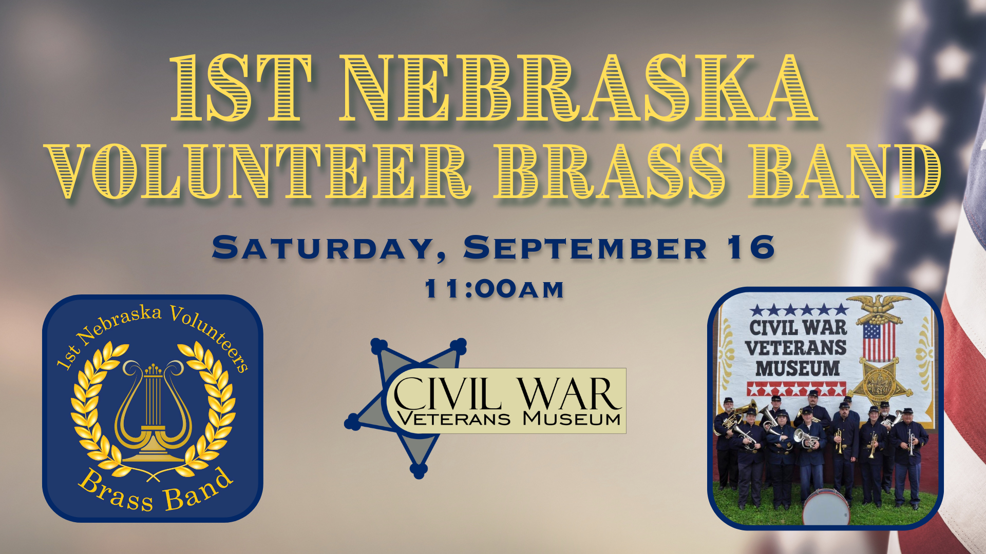 Please join us for a performance of the 1st Nebraska Volunteer Brass Band inside the newly-renovated gallery at the Civil War Veterans Museum!